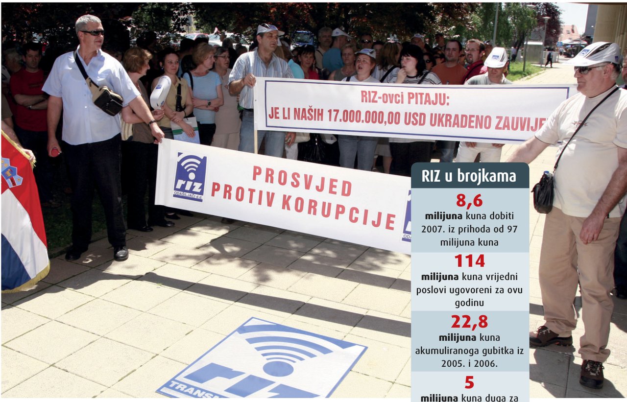 Atmosfera oko RIZ-a toliko je užarena da radnici tvrtke s parolama ‘mi smo prevareni’ i ‘korupciji nikad kraja’ prosvjedima traže natrag svoj novac, dodajući zahtjev da se tvrtka privatizira prema modelu radničkog dioničarstva. Njihovim prosvjedima pridružuje se i direktor Darko Cvjetko, koji je prije HFP-ove akcije bio najveći pojedinačni dioničar. Radnici istodobno traže njegovu smjenu, a sindikalni povjerenik Ćučuk kaže da žele imati tročlanu upravu sastavljenu od financijskog direktora Milić Bjelića, aktualne Cvjetkove zamjenice Zore Barać, za koju kaže da je u upravljanju poduzećem marginalizirana, i trećeg menadžera koji bi u tvrtku došao izvana. Cvjetku, koji dugo vodi RIZ i zapravo u rukama drži cjelokupno njegovo poslovanje, budući da ima brojne kontakte po svijetu i osigurava izvozne ugovore, radnici zamjeraju šuromanje s Ljubasom, za kojeg duboko vjeruju da želi preuzeti tvrtku, ugasiti proizvodnju i na atraktivnim nekretninama RIZ-a nedaleko od zagrebačkog centra sagraditi stanove u već najavljenom projektu Biser maksimirske šume. Radnici se ne bune protiv preseljenja, čak ga podupiru, ali žele se preseliti, a ne nestati s tržišta.