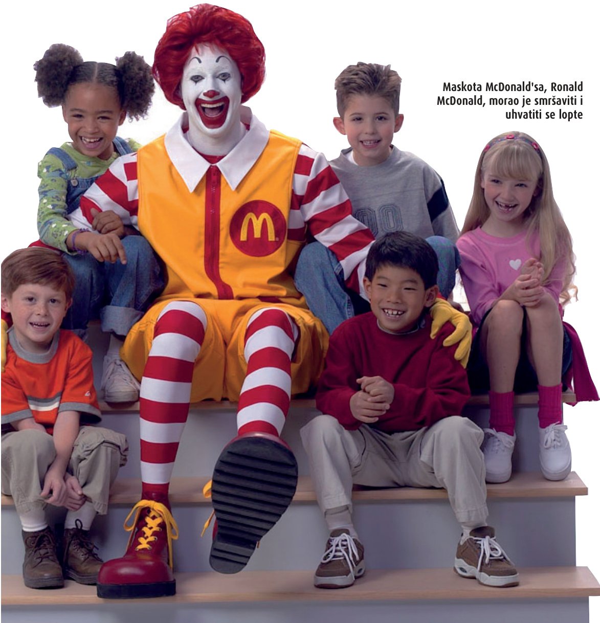Kompanija je umjesto hvaljenja bogatom prošlošću svoje ikone odabrala kreirati futurističku verziju Michelinova čovječuljka koji predstavlja lik iz budućnosti, a ne relikviju iz prošlosti. Imidž koji prati fast food industriju, posebno u kategoriji u kojima se obraća mladoj populaciji, doveo je do radikalnih poteza u razvoju lika i djela popularnoga klauna Ronalda McDonalda, maskote lanca McDonald’s. On je, naime, kako su odlučili stratezi u tom fast food divu, morao smršaviti, uhvatiti se lopte i promovirati zdrav način života.