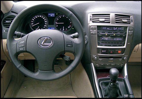 Lexusov IS njegov je najprodavaniji model. Razlog je prije svega cijena. Od standardnih automobila u premium segmentu srednje klase (Audi A4, BMW serije 3, Mercedes C klase) IS je jeftiniji, ali i opremljeniji. Manje za više ima svoj efekt na tržištu. Oprema je bogata, što se vidi i iz detalja poput površina presvučenih drvom trešnje, kakvo koriste i Yamahini stručnjaci za glasovire, elegantnih plastičnih površina i moderne instrumentne ploče. No, odskaču jedino ručice žmigavaca i svjetala, koje su jednake kao i u Toyoti Yaris.