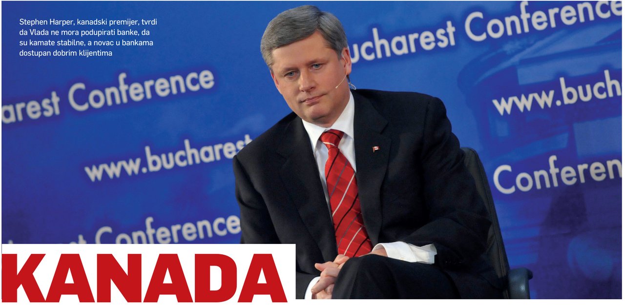 ‘Bez recesije’ – Mi ni u jednom trenu nismo morali podupirati svoje financijske institucije jer nismo imali problem s hipotekama koji bi ih upropastio. U Kanadi je trenutačno samo šest velikih banaka i tri osiguravajuće kuće, Vlada ih pomno nadzire pazeći da se ne dogode potresi – objasnio je Harper i dodao da su i kamate stoga ostale stabilne, a novac u bankama dostupan svim dobrim klijentima.