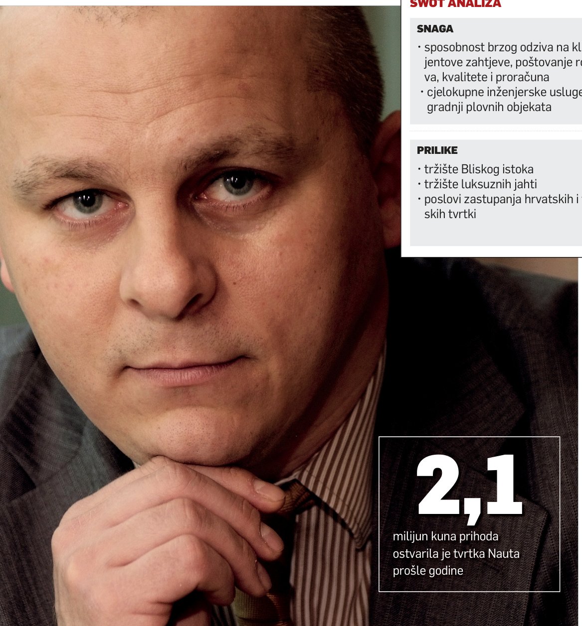 Dok cijeli svijet muku muči s krizom i nedostatkom novca, Goran Erceg, 36-godišnji inženjer strojarstva, vjeruje da će tvrtka Nauta, u kojoj je suvlasnik, na kraju 2009. zabilježiti odlične poslovne rezultate. Pravi je kuriozitet što Erceg i njegova tvrtka posluju u jednoj od svjetskom krizom najpogođenijih grana, točnije u brodogradnji, ali svejedno barem ove godine ne očekuju veće probleme.