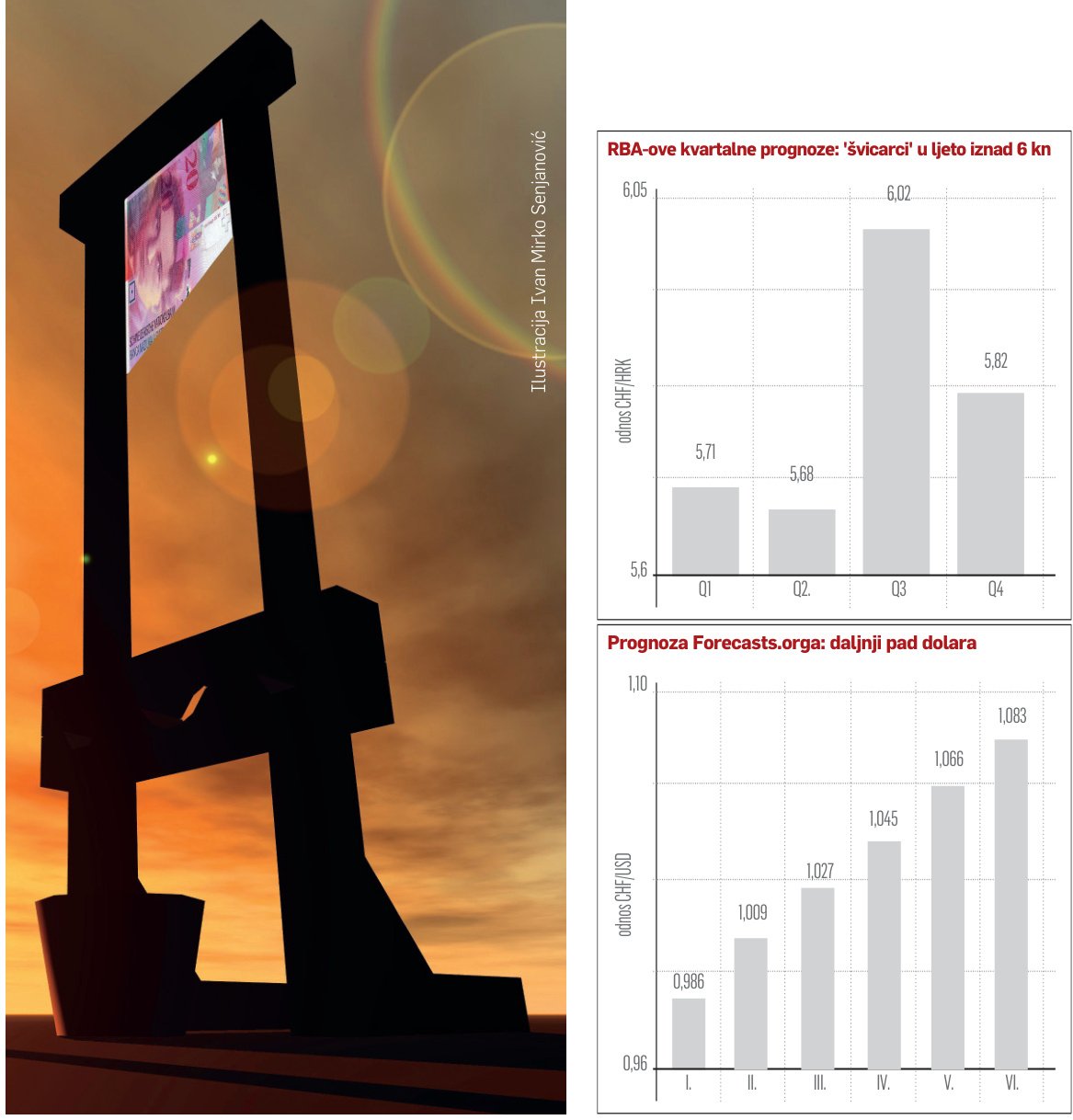 Analitičari predviđaju da će u trećem kvartalu švicarski franak ojačati na više od šest kuna, ali sljedeće godine trebao bi pasti 10-ak posto – na prosječnih 5,25 kuna. To će olakšati kreditno opterećenje za 13 posto dužnika.