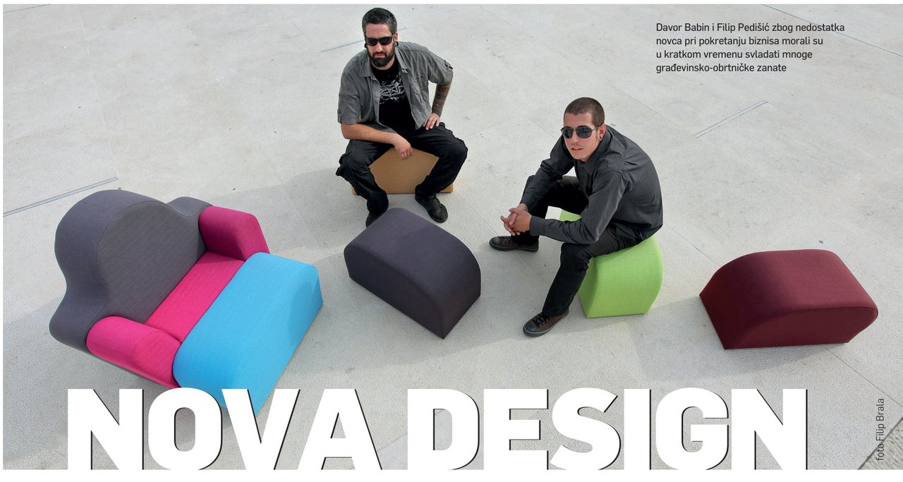 Zadarski poduzetnici Davor Babin i Filip Pedišić još su jedan dokaz da gubitak radnog mjesta ne mora nužno značiti socijalnu ovisnost i ugroženu egzistenciju. Prije dvije godine istodobno su dobili otkaz u zadarskom poduzeću za izradu tapeciranog namještaja, no to ih nije nimalo zabrinulo jer su već prije imali poduzetničke ideje. Otkaz je ubrzao realizaciju njihove ideje uz minimalno ulaganje, a četiri tisuće eura pozajmlili su od roditelja te osnovali tvrtku Nova Design za manufakturu proizvodnju unikatnog namještaja po narudžbi. Problema s registracijom tvrtke nisu imali.