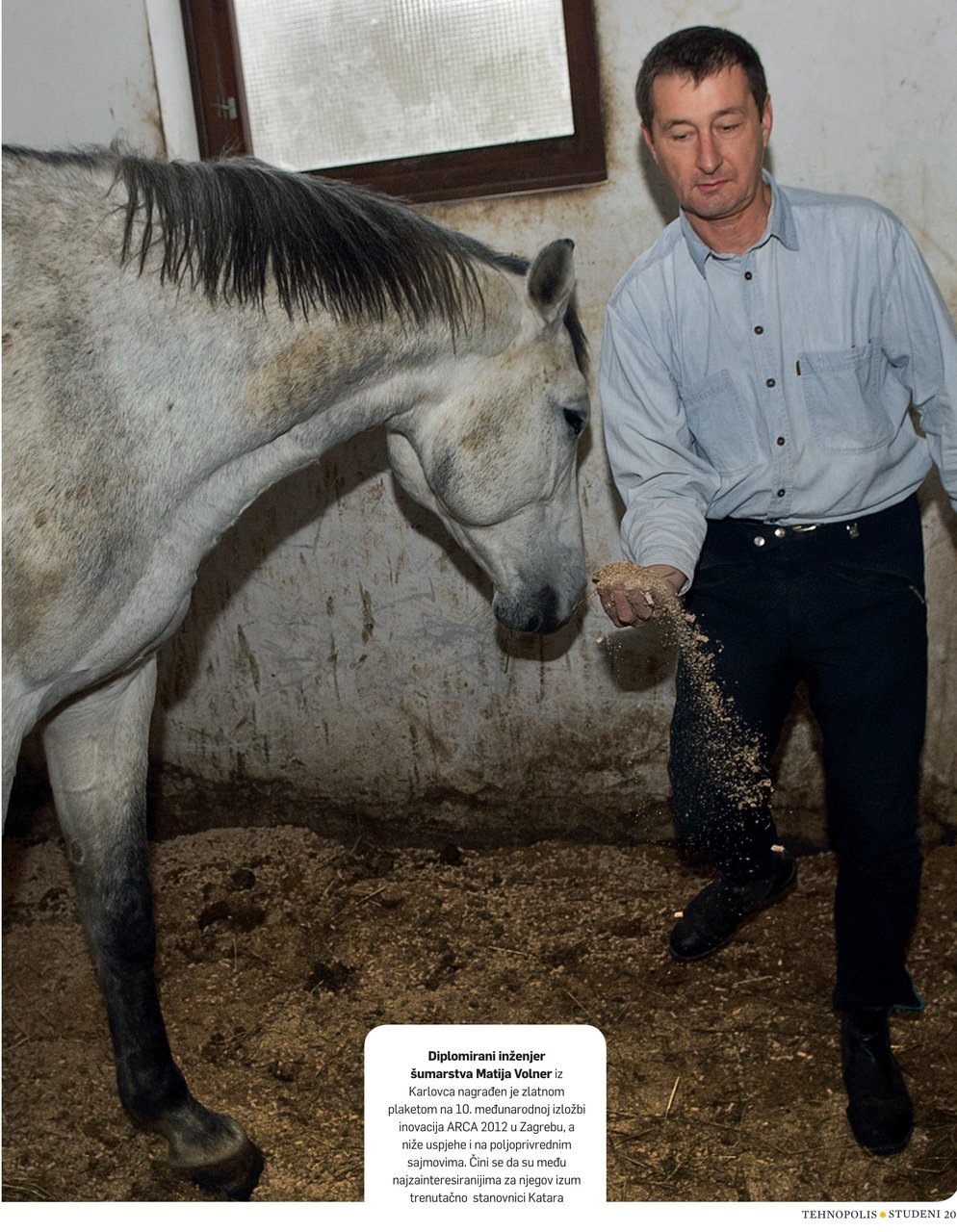 U sve to ušao sam s pozicije uzgajivača lavande zajedno s poslovnim partnerom i prijateljem Robertom Halmijem, koji se bavi preponskim jahanjem i treniranjem konja, ali i izvoznik lavande u arapske zemlje. Kroz razgovor s njim o problemima u održavanju higijene u stali najprije sam mu htio pomoći tako da u stelu na podu umiješamo i lavandinu slamu da posluži kao repelent insekata. Međutim, shvatio sam da je glavni problem amonijak kao ishodište daljnjih komplikacija. Rekao sam da ću probati napraviti neku prostirku koja će razgrađivati amonijak, na što je Robert bio vrlo skeptičan s obzirom na neuspjele slične pokušaje u svijetu, za čime konjari već tisuću godina tragaju. No u svojim istraživanjima našao sam i na prirodnu aktivnu tvar koja na pravi način potiče razvoj humificirajućih bakterija i nju sam ugradio u moj patent. Daljnji tehnološki problem bio je kako spriječiti pelete sa smjesom mog agensa i ljekovitog bilja da silno ne ekspandiraju u dodiru s vlagom prije nego dođu na pod staje, gdje se to od njih onda i traži. U tome sam uspio, pa sad imamo pasivnu suhu tvar koja se aktivira vodom tek kad mi to želimo, a ne navlači vlagu iz zraka. No trebalo je to i praktično provjeriti, pa je umjesto euforije uslijedila empirija – kaže Matija Volner.