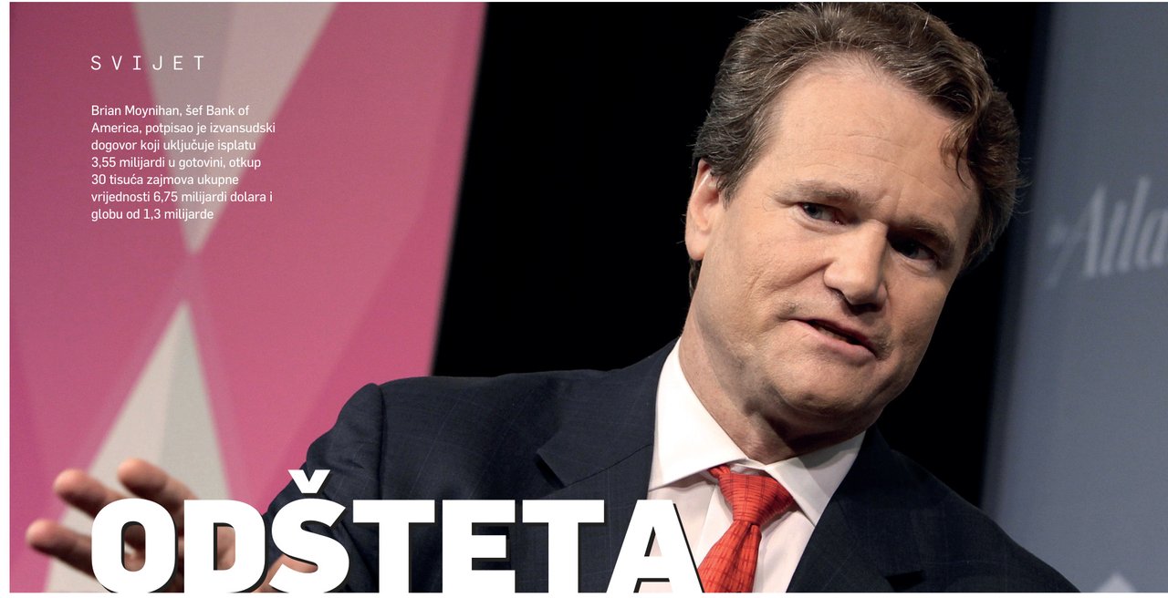 Ceh za financijski nered i divljanje banaka, barem u slučaju Amerike, odakle je sve i počelo, podebljan je za 20-ak milijardi dolara ovaj tjedan, iako je riječ samo o trošku za bilance najvećih banaka. Ukupan račun za krah razvijenih gospodarstava i dalje se zbraja, ali je svakako neusporedivo veći i sasvim nenaplativ. Ipak, kad je riječ o samim bankama, problem bi se dvama dogovorima između niza najvećih banaka i vlasti trebao napokon riješiti, a uvjerljivo najlošije prošla je Bank of America koja se pojavljuje kao ‘platiša’ u obje nagodbe. Jedna od banaka u središtu financijskog uraganja koji je bacio u bezdan zapadna gospodarstva prije nekih pet godina bez obzira na iznimno visok račun ne bi trebala imati znatnijih problema s isplatom, kroz krizu su uspjeli proći u komadu, čak i unatoč prisilnoj kupnji posrnulog Merrill Lyncha i ‘usisavanju’ katastrofalnog Countrywidea.
