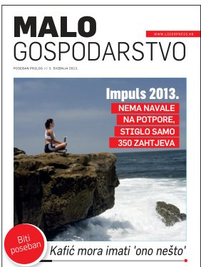 U programu ‘Poduzetnički impuls’ Ministarstvo obrta i malog poduzetništva za ovu godinu pripremilo više od 700 milijuna kuna. Slobodno se može reći da nikada kao ove godine mjerodavno Ministarstvo u programu raspodjele tog novca nije ušlo tako sustavno i pripremljeno. Gotovo idealno. Sve se zna, sve je transparentno, sve pojednostavljeno. Ipak, u prva dva mjeseca na natječaje za potpore javilo se samo oko 350 poduzetnika. U Ministarstvu se tješte da je riječ o tome da poduzetnici, nepritisnuti rokovima jer je natječaj otvoren sve dok se ne potroši novac, pripremaju kvalitetnije projekte, no raskorak u odnosu na lanjskih 11 tisuća zahtjeva za potporama je prevelik da bi to bilo dovoljno objašnjenje zašto nema interesa za potpore. Jednostavno, ponostalo je poduzetničkog entuzijazma.