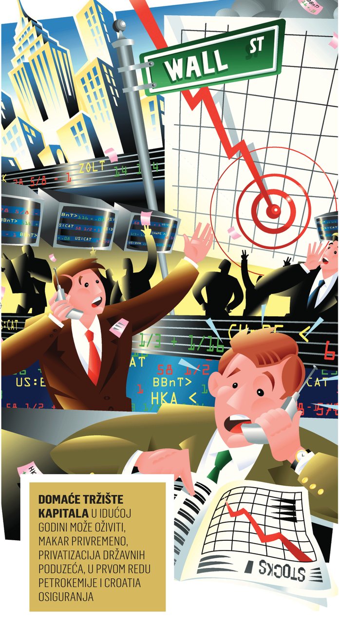 U idućoj godini domaće tržište kapitala mogu oživiti, makar privremeno, privatizacije državnih poduzeća, u prvom redu Petrokemije i Croatia osiguranja.