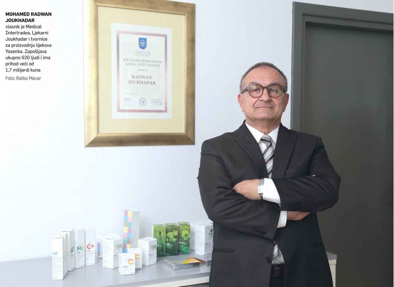 Nije mi cilj tužbama naplaćivati kamate, ali kad smo jedanput kasnili s plaćanjem poreza državi samo jedan dan, odmah smo dobili opomenu pred ovruhu i kamate. Da se poštuje rok plaćanja od 60 dana kako je to definirano zakonom i ugovorom, ne bismo ni imali kredite za koje plaćamo 10 milijuna kuna kamata na godinu. Kad bi lijekove umjesto bolnica plaćao HZZO, taj bi problem bio riješen – kaže Joukhadar, ističući da industriju lijekova i medicinskih proizvoda na hrvatskom tržištu karakteriziraju jaka tržišna utakmica i niska profitabilnost. U takvim je uvjetima tvornica Yasenka uz Ljekarne Joukhadar dodatni oslonac Medical Intertradeu u slučaju bilo kakvih turbulencija u poslovanju.
